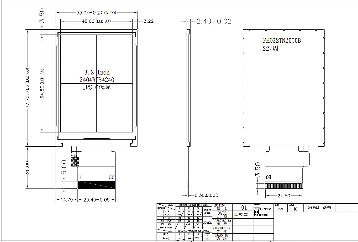 3.2 inch TFT LCD Display – 240*320 IPS LCD Display Module, 50Pin