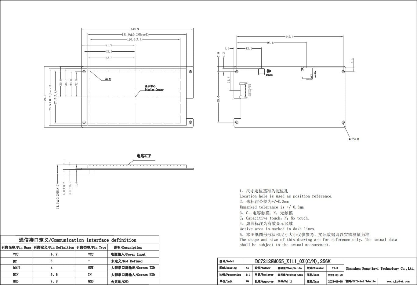 5.5-inch Serial Port TFT LCD Screen – 720*1280 Touch Panel, RS232 400M SOC HY2.0-8P, ESP-07S WIFI