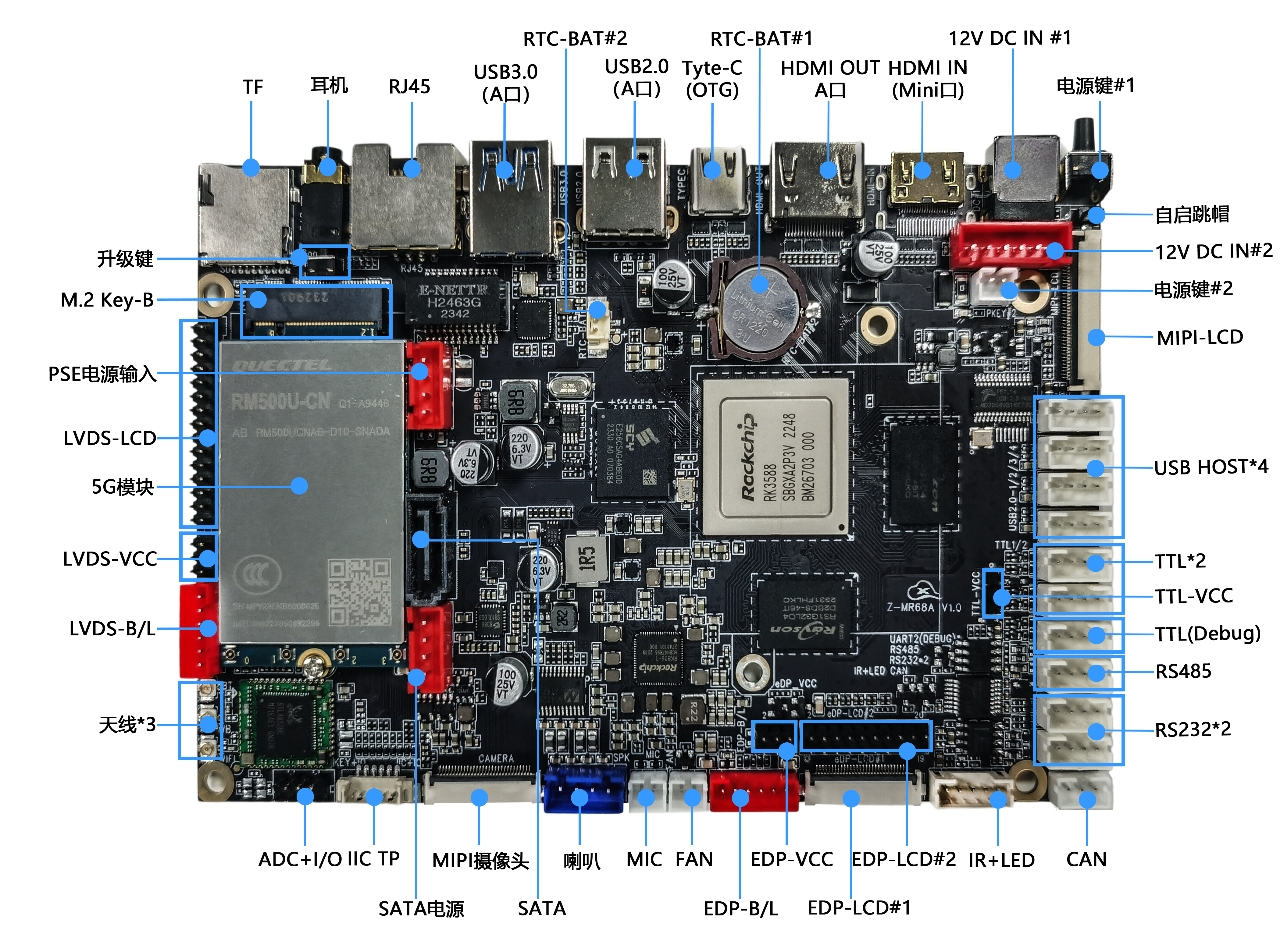 Includes 2 RS232, 1 RS485, 2 TTL, 1 DEBUG, and 1 CAN ports, catering to industrial control and automation needs. - Other Interfaces: